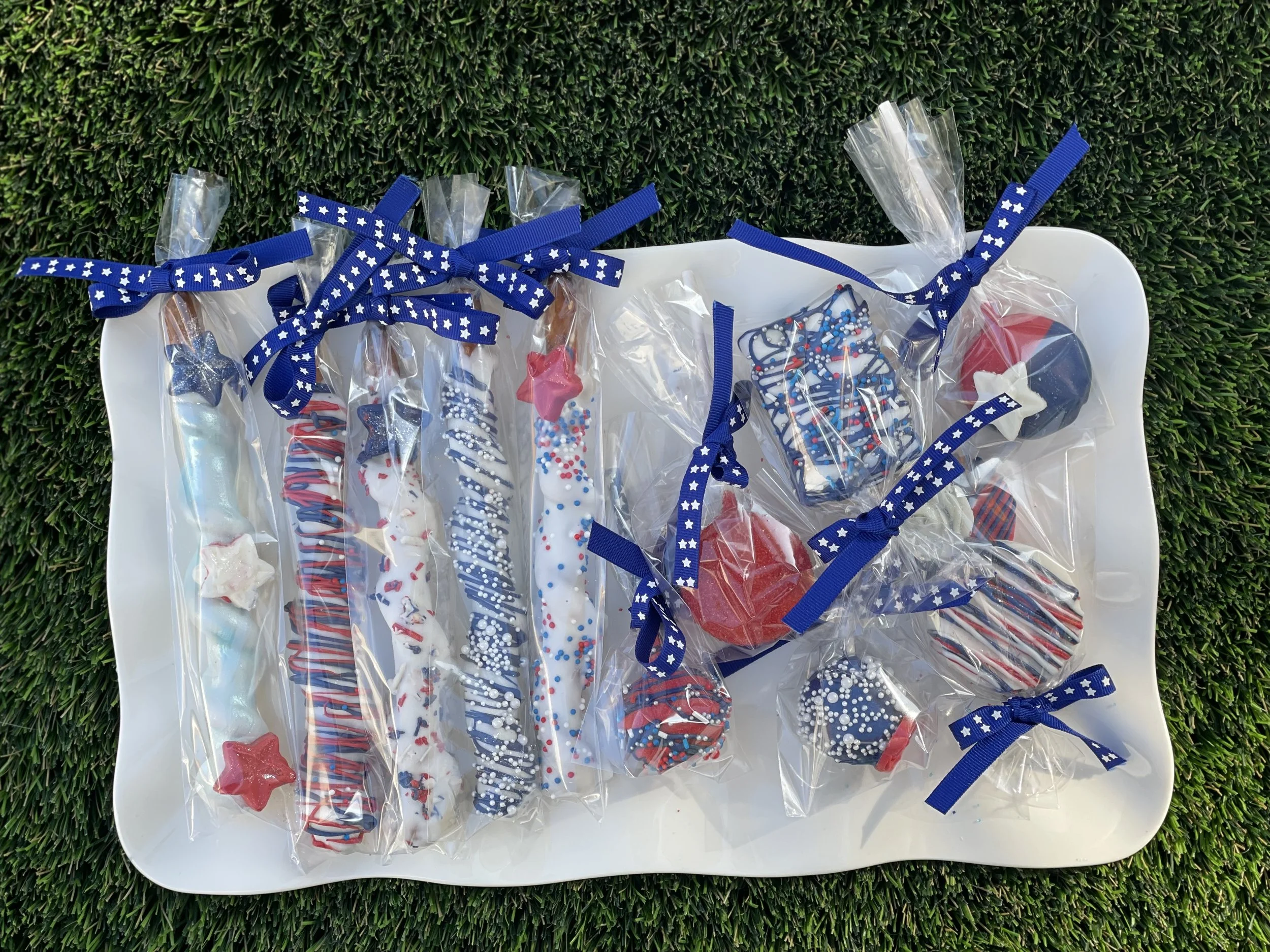 Party Pack - 12 of each item $200.00 Individual Packaging $2.00 Oreo Flight (1/2 dozen) $12.00 Oreo Flight (1 dozen) $24.00 Rice Krispies (1/2 dozen) $12.00 Rice Krispies (1 dozen) $24.00 Caramel Pretzels (1/2 dozen) $15.00 Pretzel Sticks (1/2 dozen) $12.00 Traditional Pretzels (1/2 dozen) $12.00 Decorated Cake Pops (1/2 dozen) $13.00 Individual Item (excluding Caramel Pretzels & Cake Pops) $3.00 Pretzel Sticks (1 dozen) $24.00 Caramel Pretzels (1 dozen) $30.00 Traditional Pretzels (1 dozen) $24.00 Decorated Cake Pops (1 dozen) $26.00